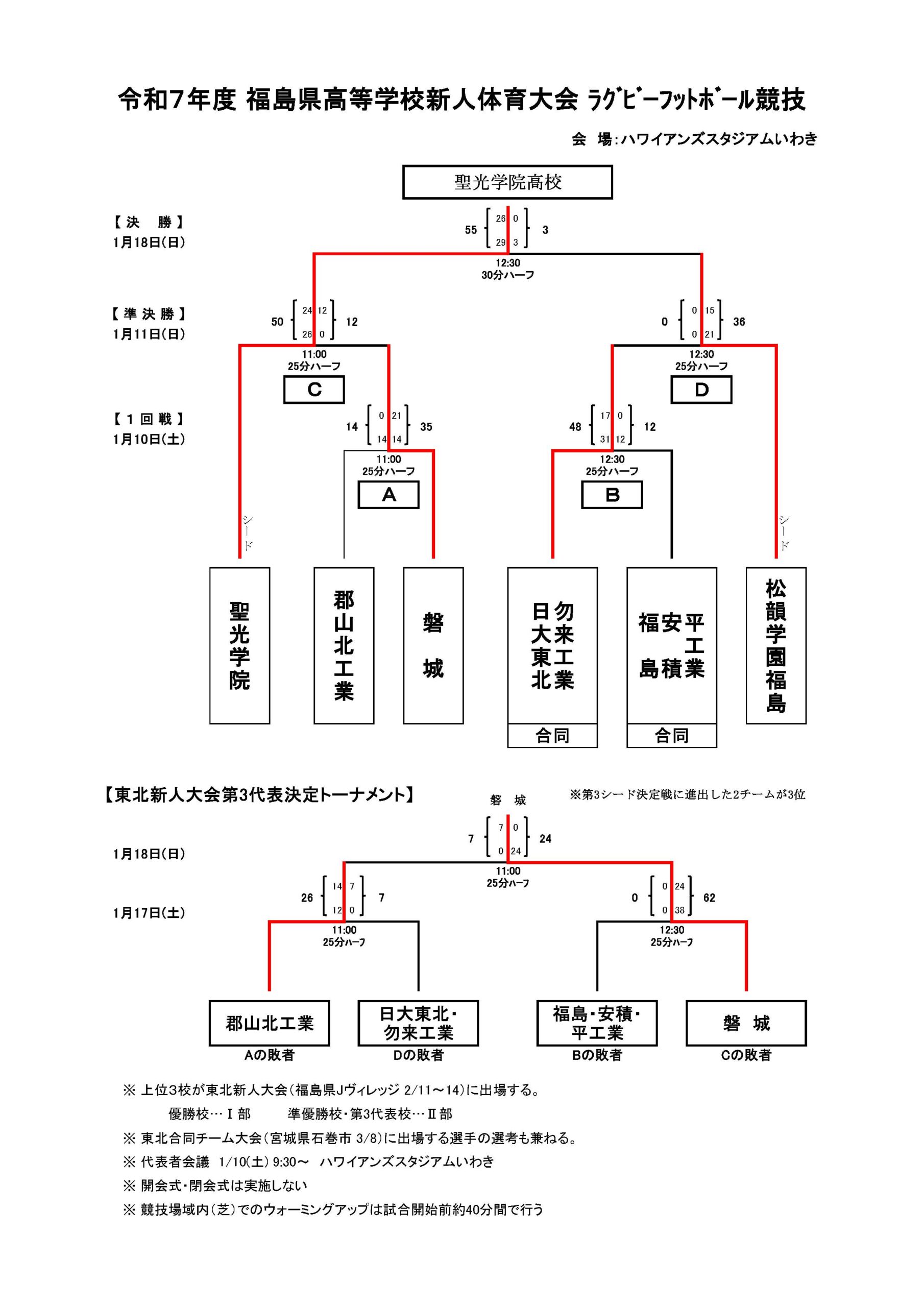 | 2026/01/1012:30 | ハワイアンズスタジアムいわき | 合同(日大東北・勿来工業) vs 合同(福島・安積・平工業) |